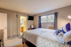 Welcome to Spencer Estates! A park-like complex. This end-unit townhouse offers 1481 sqft with 3 beds, 2.5 baths. It's clean, well-kept, and filled with natural light. Enjoy a spacious living room with a gas fireplace, a connected kitchen/dining area, and 2 balconies overlooking a private greenspace and creek. Includes a single garage and is near schools, parks, and transit.