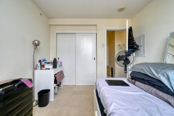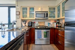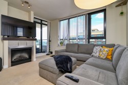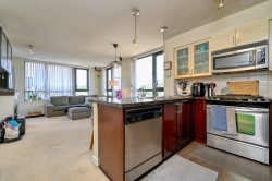 Bright and spacious 2 bed/2 bath corner home with water views at The Q, a concrete building in New West Quay. Functional layout with separated bedrooms, open kitchen/living/dining area, and a large balcony. The king-sized primary features double closets and a 4-piece ensuite. Kitchen offers granite counters and stainless appliances. Well-managed strata with strong contingency. Amenities include a gym, clubhouse, and 4th-level patio. 1 parking included. Pets and rentals allowed. Steps to SkyTrain, River Market, and the Quay Boardwalk.