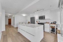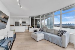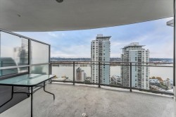 Welcome to Azure 1, where expansive windows showcase stunning, panoramic views of the Fraser River and New Westminster's vibrant downtown. This spacious residence offers over 1,200 sq. ft. of thoughtfully designed living space, including 2 bedrooms, 2 bathrooms, and a versatile den. Enjoy seamless access to all your essentials with Safeway, Starbucks, and the SkyTrain at your doorstep, bringing you to downtown Vancouver in minutes. With amenities like a gym, sauna, and steam room, Azure 1 blends urban convenience with the tranquility of waterfront living—your perfect new home awaits.
