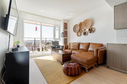 PANORAMIC VIEWS | LUXURY LIVING - Welcome to Hunter at Lynn Creek! This stunning 1 BDRM + DEN home offers breathtaking south-facing views, a spacious covered balcony, and air conditioning for year-round comfort. The sleek open-concept kitchen boasts quartz countertops, modern cabinetry, stainless steel appliances, and a gas stove-perfect for home chefs. The den is ideal for a home office, while wide plank laminate flooring adds a touch of elegance. Enjoy resort-style amenities: a gym, sauna/steam room, party lounge, BBQ area, kids' play zone, and more! Steps to Seylynn Park, Spirit Trail, rec center, shops, pharmacy, nail salon, and transit. 2 pets welcome!