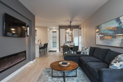 Fully furnished and ready to use as your home or utilize the income from renting it out. The fully furnished 2 bed, 3 bath townhome offers granite kitchen counters, stainless steel appliances, a cozy fireplace, and in-suite laundry. Luxurious bathrooms feature tile and glass walk-in showers. Enjoy resort amenities including a heated outdoor pool, hot tub, fitness area, and business centre. With no age or rental restrictions and pet-friendly policies, this townhome is perfect for personal enjoyment or as a rental investment. Heat pump keeps the home comfortable throughout the year. Located within walking distance to world-class spas, coffee shops, mini golf, and the iconic Rathtrevor Beach. Built in 2023 with 2-5-10 home warranty. GST applies.
