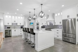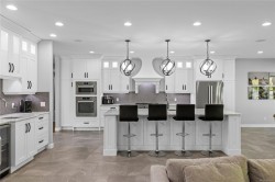 Custom executive-quality home by Chretien Construction, completed in 2021 on sought-after Chase Dr. Built with exceptional attention to detail, this home features a fiberglass algae-resistant roof, Trane heat pump, 2-stage natural gas furnace, and Navien hot water on demand with closed loop. Inside, enjoy engineered hardwood and tile flooring, stone countertops, triple ovens, a gas fireplace with statement mantle, coffered ceilings, and built-in surround sound. Smart tech includes Lutron lighting, Rachio irrigation, 8-camera security, and 200A electrical with 100A sub panel. Bonus features: triple garage with passthrough, RV sani/electrical hookups, and roughed-in suite with separate entry, laundry, and kitchen. Set on a beautifully landscaped 1-acre parcel with rock retaining wall, covered patio, and hot tub, all located on a quiet dead-end street near amenities. A rare opportunity—book your private showing today.