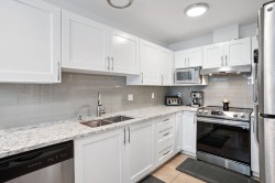 Top floor living with all the perks! This bright and beautifully updated 3 bed, 2 bath condo offers over 1,070 sqft of open-concept comfort in a quiet, well-kept building. From stylish laminate floors throughout to the spacious kitchen with a breakfast bar and generous storage, every inch is designed for easy living. The primary suite is a true retreat—featuring a walk-in closet, 4-piece ensuite, and its own private balcony for a little morning sunshine. Two additional bedrooms are perfect for a growing family, home office, or guest space. Bonus: 1 parking, storage locker, and tons of street parking. Just steps to schools, shops, transit (West Coast Express), plus the scenic PoCo Trail and riverside paths. Convenience, community, and charm.