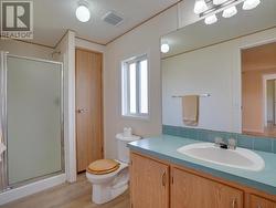 Sunny, Spacious & Affordable - Great Value in Blue Mountain Estates! This well-kept 3-bedroom double wide modular home offers exceptional space and a bright, functional layout. Updated flooring and neutral paint make it easy to move in and add your own personal touch. The primary bedroom features a walk-in closet and 3-piece ensuite. A flexible bonus room with French doors and outside access could be a den, media room, or extra guest space. The southern exposure keeps things sunny, while a covered patio offers shade. The established garden includes a greenhouse, shed and you will love the privacy. Another bonus is the large solar panel array that helps to lower energy costs. Close to walking trails and Julie's Airport Caf. Needs a few updates to modernize it and is priced with that in mind. A fantastic option for downsizing without giving up space, comfort, or outdoor living. Pad rental $550/month. (id:27)
