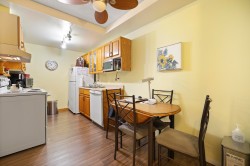 Discover this spacious & cozy ground-floor 1 bed home in the sought-after Sussex Square complex. Upgrades to the complex in recent years include new windows, balconies, patio fencing, building exterior, repaved parking lot and plumbing for the buildings. This south-facing unit features a large quiet patio perfect for outdoor relaxation. Inside, you'll find a functional layout with a generously sized bedroom & an additional storage room for added convenience. The property is leasehold title, with a maintenance fee covering property tax, heat & hot water. While the complex has a no-pet policy, it offers excellent rental returns, with 2 levels of schools nearby. Enjoy easy access to the Railway Trail, community center, and a short drive to the airport, Vancouver, and shopping destinations.