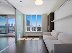 Welcome to Alumni, a sought-after concrete high-rise where intelligent design meets modern city living. This 1 bedroom corner unit offers exceptional privacy, paired with thoughtfully designed interiors & exceptional functionality. Discover a bright & spacious layout featuring Bosa’s signature space-saving features: an integrated dining table that extends from the kitchen island, a built-in guest bed concealed within sleek millwork, & a pull-out bed that effortlessly converts into a sofa. Designed for both comfort & functionality, every square foot is maximized to suit your lifestyle. Steps to the SkyTrain, SFU, KPU, T&T Supermarket, Central City Mall, & an array of dining and shopping options. 1 parking, 1 locker, vacant & easy to show. Live smarter, live better!
