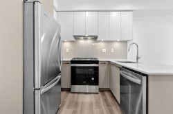 Welcome to Silva 1! This ground-level, 1 bedroom and 1 bathroom features a spacious ground-floor patio offering easy access to nearby parks and bus stops, perfect for relaxation or hosting. Enjoy refined cooking on a gas stove, complemented by premium finishes throughout — stainless steel appliances, quartz countertops, wide-plank flooring, in-suite laundry, and an elegant double-sink bathroom. Located in the heart of East Newton, you’ll be within walking distance of shops (Costco, Superstore, Canadian Tire, restaurants, and schools. The building features numerous amenities: a beautifully designed courtyard, fully equipped fitness center, co-working area, social lounges, community kitchen, and more. This is the perfect home for first-time home buyers, young couples or investors!
