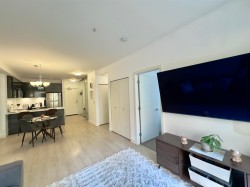 Experience spacious living in the heart of Surrey at The Verve! This bright 1-Bed + Large Den (719sqft) features 9' ceilings, a modern kitchen with quartz counters, full-size stainless steel appliances, large island with breakfast bar, and under-cabinet lighting. The oversized bedroom includes his & her closets and dual-access bathroom. Enjoy in-suite laundry and a west-facing balcony perfect for relaxing or BBQs. Includes 1 underground parking & storage locker. Building amenities: gym, yoga, billiards lounge, guest suite, and secure entry. Steps to King George SkyTrain, SFU, Central City Mall, parks, hospitals & restaurants—must see! Open House: Sat. & Sun (Nov.15&16) 2-4pm.