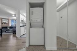 Welcome to this well maintained 1 bedroom + den home at Cornerstone, where the den offers flexibility as a second bedroom or private office. Measuring 828 sq. ft., this sun-filled corner unit features expansive windows throughout and two balconies. Updates include new flooring and new paint. Exclusive building amenities include an outdoor pool, hot tub, fitness centre, amenity room/games room and secure underground parking. This unit includes 1 parking and 1 storage. Situated in a central location just steps from Gateway SkyTrain Station, you're moments from shopping, dining, and everyday conveniences. This is an exceptional opportunity for both first-time homeowners and investors seeking value in one of Surrey's most connected neighbourhoods.
