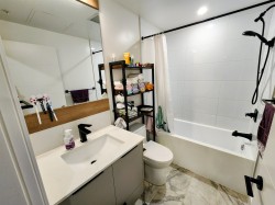 Welcome to your chic 1-bed haven in Surrey’s Gateway pulse! This 2-year-young Hendrix gem glows with 9-ft ceilings, huge windows + roller shades, and sunshine all day. Dream kitchen: glossy quartz, porcelain backsplash, soft-close cabinets, full stainless suite. Step onto your covered balcony for sunrise coffee or sunset chats. Stay fit in the cozy gym, flow in the yoga studio, host in the fireside lounge or courtyard party room with full kitchen + BBQ. Pet-friendly, parking + locker included. 8-min walk to Gateway SkyTrain, 15-min to SFU, seconds to malls, parks, eateries, hospital. First-timers & investors: this is IT. Book your private tour now!