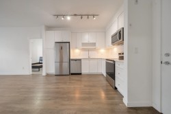 Welcome to Kings Landing by Dawson + Sawyer, where modern design meets everyday comfort. This nearly new 3-bedroom, 2-bathroom condo offers a bright, open floor plan with 10-foot ceilings and quality finishes throughout. The sleek white kitchen is the heart of the home, featuring quartz countertops, a large island, and high-end stainless steel appliances, perfect for cooking and entertaining. The spacious primary bedroom includes a walk-in closet and ensuite, while the covered balcony provides a relaxing outdoor retreat. Complete with in-suite laundry, storage locker, and parking, with the option to add another spot. The 3rd bdrm does not have a window. A beautifully maintained home in a sought-after community—don’t miss it!