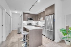 Welcome to Kings Landing II by Dawson+Sawyer! This beautifully designed 1 bedroom + den, 1 bathroom home combines style, comfort, and functionality with an open-concept layout, stainless steel appliances, and upgraded kitchen island with under-cabinet lighting. Enjoy a bright living space with unobstructed mountain views, a spacious primary bedroom with walk-in closet and ensuite, plus a flex den with sliding door perfect for a home office or guest room. Amenities include a gym, games room and party lounge all within a wheelchair-accessible building. Pets and rentals allowed! Steps to shopping, parks, and transit — this is modern living at its best. Easy to show and sure to impress!