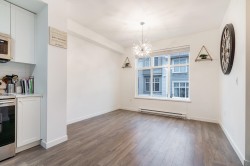 Welcome to Kings Landing II by Dawson + Sawyer. This well-maintained 4 bed, 4 bath townhome offers over 1,500 SF across 3 levels. Entry level features a bedroom with full ensuite—perfect for guests, teens, or a private office. Main floor boasts 10’ ceilings, sunken living room, spacious kitchen with oversized island, quartz counters, tile backsplash, and stainless steel appliances. Upstairs includes a king-sized primary bedroom with walk-through closet and spa-inspired ensuite with double vanity and oversized shower, plus 2 more bedrooms, full bath, laundry, and linen storage. Side-by-side double garage, clubhouse access, and close to transit, schools, parks, and shopping.