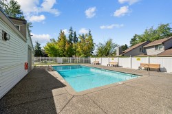 Step inside this GORGEOUSLY updated 2 bed 1 bath 1,005sqft townhome w/MASSIVE backyard located in the desirable GREENSIDE ESTATES! Vaulted ceilings in the open concept living / dining room let the natural light pour in while the WOOD burning fireplace gives you the homey, cozy feeling. Updated kitchen w/TONS of storage, countertop space & Brand New Appliances! Newly installed laminate flooring, fresh paint throughout, Outdoor living is a 10/10 Huge Private yard & over 200 sq/ft of deck space, generous sized rooms, WIC in main bed,4 piece bath, new hot water tank(3 years)& recently renovated clubhouse W/GYM, pool & Basketball Court! Great amenities but still low strata fee of $383/month! Click "VIRTUAL TOUR" link for more info, photos, videos & 3D floorplan! OPEN HOUSE SAT NOV 15 12PM-2PM