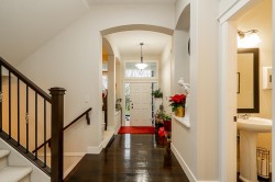 Welcome to this beautifully cared-for Foxridge home in the heart of West Cloverdale. Showcasing pride of ownership throughout, this inviting family residence is ideally located near schools, parks, and shopping. Thoughtful upgrades include rich hardwood flooring, a granite kitchen island, stainless steel appliances, plush carpeting, and stylish lighting. The main floor offers an ideal layout with a cozy living room, a bright family room with gas fireplace, and an elegant kitchen with a large island and eating area opening to a private patio and fenced backyard. Upstairs features three bedrooms, two full bathrooms, and an open office area. The fully finished basement includes a kitchen, den, two bedrooms, and full bathroom. Video tour available—this one is a must-see.