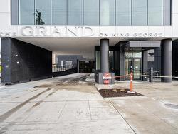 Modern Living at The Grand on King George. Stylish 1-bedroom + den, 1-bathroom condo on the 8th floor with 567 sqft of open living space and a 93 sqft balcony. Features include custom millwork doors, illuminated closet organizers, CENTRAL HEATING & COOLING, Wi-Fi-enabled Samsung appliances, GAS cooktops (included in strata fees), and efficient kitchen cabinet organizers. Enjoy 23,000 sqft of premium amenities: a private off-leash skypark, state-of-the-art fitness centre, VR room, outdoor BBQ and park area, playground, and 24/7 concierge. Conveniently located above five floors of commercial space with coffee shops, medical offices, and daycare at your doorstep. Less than 5 minutes’ walking distance from Gateway Skytrain Station, schools, and easy access to Highway 1.