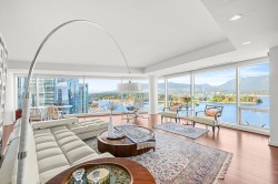 TWO HARBOUR GREEN WATERFRONT ESTATE HOME — A world-class fully furnished residence offering 3,636 sq. ft. of interior living plus nearly 300 sq. ft. of outdoor space. Features include 3 bedrooms, 3.5 bathrooms, an open floor plan, hardwood floors, an entertainer’s kitchen with Miele and Sub-Zero appliances, and a luxurious primary suite with a spa-inspired ensuite. Enjoy breathtaking 180-degree northwest water, mountain, and city views. Hotel-style amenities include 24-hour concierge, pool, spa, sauna, guest suite, virtual golf, and a private 3-car garage with storage. Ideally located near Stanley Park, the Seawall, marina, fine dining, and luxury shopping.