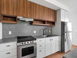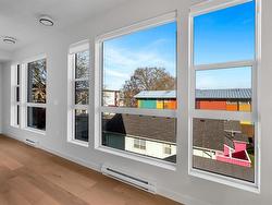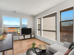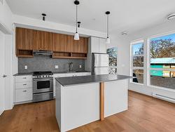 Welcome to Tresah East, a modern and stylish condominium in the heart of Victoria’s vibrant Midtown. This thoughtfully designed community offers contemporary living just minutes from downtown, the Galloping Goose Trail, and the Gorge Waterway, with easy access to parks, shopping, dining, and transit. Unit 307 is a spacious one-bedroom corner suite on the southeast side, designed for both comfort and style. The open and airy layout boasts 8’11” ceilings, wide-plank oak flooring, and high-end finishes throughout. The sleek kitchen is equipped with quartz countertops and backsplashes, along with a premium stainless steel appliance package. Additional highlights include in-suite laundry and advanced soundproofing for a peaceful living experience. Don’t miss out on this opportunity to own a beautifully designed home in one of Victoria’s most sought-after neighborhoods!