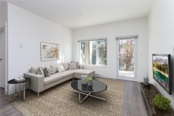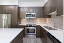 Welcome to The Coho and all that elevated living has to offer. This 2bd/2bth home is located at the back of the building, quiet & surrounded by greenery & trees. Enjoy sun-filled mornings & stay cooler on hotter days while relaxing on your large balcony. You will love the private layout with bedrooms & baths on opposite ends and an open living area between. The 9'ceilings plus glass window & door amplify the sense of space. The generous master bedroom has a walk through closet that opens to a modern glass & tile ensuite. The 2nd bedroom matched in size also has access to a 4 pc bath. The contemporary kitchen includes double sink, quartz counters, tile backsplash, a new Fisher & Paykel fridge, wood cabinets and large seated island. Off the kitchen you will find a desk area & laundry with new washer & dryer. This unit is in prime condition - professionally cleaned and freshly painted throughout. 1 secure underground prkg & storage. Close to all amenities. Book your viewing today!