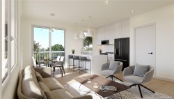 Now Selling!! Nature’s next-door neighbour! View Royal’s newest condo building, The Grand & Fir has Jr. 1 bedrooms, 1 bedrooms, & 2 bedroom units remaining. With 40% of the homes priced under $500k and 70% under $600k, there are options to suit a wide range of budgets. Just steps from Portage Park and Thetis Cove Waterfront, this building is perfectly positioned to blend serene greenery with urban convenience. Choose from two modern colour schemes and enjoy KitchenAid black stainless steel luxury appliances. This eco-friendly building features heat pumps, Nest thermostats with climate control, smart lighting, EV charging capabilities in every parking stall, and shared onsite kayaks, e-bikes, and paddle boards to help you make the most of the surrounding nature. Deposits as low as 2.5%!