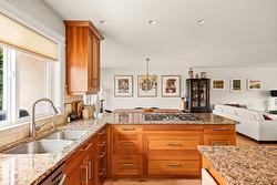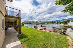 Welcome to an exceptional waterfront retreat on Pritchard Canal, where the Okanagan lifestyle comes to life. Here you will find the convenience of waterfront living without the higher tax bill. Designed for comfort and elegance, this professionally renovated 3-bedroom walkout rancher offers over 3,600 sq. ft. of luxurious living space. The bright, open floor plan flows seamlessly from the gourmet kitchen, boasting a granite island, custom wood cabinetry, stainless steel appliances, and a gas range to the inviting living areas with maple hardwood floors. The main level features a sophisticated master suite, a private office, and an inspiring art studio. Downstairs, a spacious family room, and a convenient guest or in-law suite complete with its own laundry and private entrance provide ample flexibility. Enjoy modern amenities like a Navien instant hot water system. Heading outside, you are welcomed by captivating views of the canal waterway and the picturesque Mission Hill Winery bell tower. Outdoor entertaining is a dream with a covered patio, a charming timbered pergola, a main level deck, and a beautifully landscaped, east-facing front courtyard. And as expected with a property on the waterway, this home on prestigious Pritchard Drive offers a newer dock with 4000 lb electric boat lift for your private moorage. With an impressive front entry, a double garage, covered pergola carport, this is an unparalleled opportunity to embrace the best of Okanagan living. New roof.