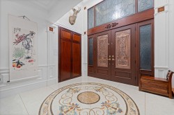 This extraordinary 7,654 sq.ft. Chartwell residence, set on a 15,562 sq.ft. lot, offers 6-bedroom, 7-bath, with spectacular 270° views of the ocean, Lions Gate Bridge, and city skyline. Distinguished by rare dual entrances from both north and south Chartwell Street, The exterior is clad entirely in unique Karamaili gold marble, while interiors are marble floors, hand-carved from Indonesian mahogany by master artisans. Italian ruby marble countertops highlight the kitchen and bar, complemented by a natural marble mural and an exquisite jade-carved fireplace from Afghanistan. Japanese embroid silk wall paper. Wine bar and home theatre outdoor pool and inlaw suite. Steps from Chartwell Elementary/Sentinel Secondary, the location is unmatched. Open house Dec 18 (Thur) 10 am - 12 pm.