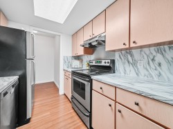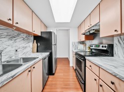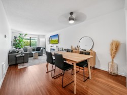 Welcome to Oceanview, a quiet oasis in the heart of White Rock. This bright south facing home feels open and airy with a large private balcony overlooking the gardens. The layout is flexible with an oversized primary bedroom plus a spacious den that can easily function as a second bedroom or a comfortable home office. The home has been well maintained with updates to the flooring, doors, baseboards and bathroom. The kitchen features stainless steel appliances and a walk in pantry for added convenience. The building also offers a rooftop deck where you can enjoy beautiful ocean views. All of this in a prime location close to shopping, parks, transit and just a few blocks from the beach. A great opportunity for affordable living in White Rock.