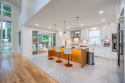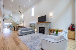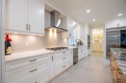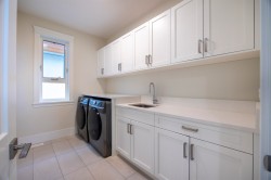 This custom built 4,484 sq.ft. home features high ceilings on main floor throughout the dinner room and the family room with lots of sun lights. A large gourmet kitchen and spice kitchen to suit all your cooking needs. Front and back outdoor patios with bbq areas give you more relaxing and privacy spaces. 3 ensuites upstairs and one extra bedroom with bathroom on lower level. The master suits enjoys a spectacular ocean and mountain views, features a private relaxing area with fireplace, walk in closet, deck and ensuite with floor radiant heat. The lower level features a theatre with wet bar, a laundry roughed-in for potential rental suite. Rare 4 car garage plus work shop.