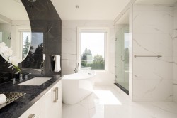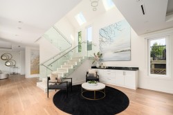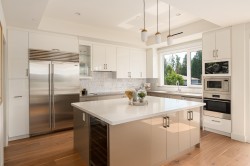 Luxurious ocean-view residence in the heart of White Rock, offering 5,600 sqft of living on a 7,000 sqft corner lot. This custom home features 5 bedrooms & 8 bathrooms with an open layout filled with natural light. Main floor boasts walnut hardwood, gourmet + wok kitchen with Sub-Zero & Wolf appliances. Upstairs has 4 ensuite bedrooms, including a master retreat with spa bath, walk-in closet, and private ocean-view deck. Basement offers media room with bar & wine cellar, recreation room, sauna, and guest suite. Walking distance to schools, beaches, parks & shopping. School Catchment: Ray Shepherd Elementary & Elgin Park Secondary. Open house: Nov 9, Sun, 2-4PM.