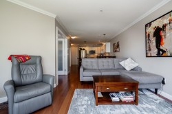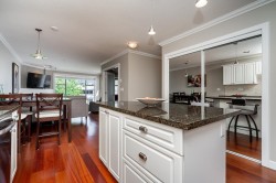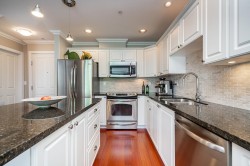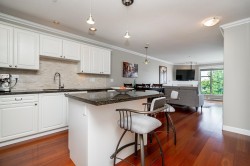 Enjoy the White Rock Beach Side Lifestyle. Just steps to West Beach, the iconic White Rock Pier, and the seaside shops & dining of Marine Drive. This beautifully updated 2-bedroom, 2-bathroom condo features an open concept layout with stunning hardwood floors, a cozy gas fireplace, and a modern kitchen with a large granite island and stainless steel appliances. Enjoy ocean breezes from your private patio—perfect for morning coffee or evening sunsets. The spacious primary bedroom includes a walk-in closet, and you'll love the convenience of the in-suite laundry room with full-size washer and dryer. J Secure underground parking included! Live, play and enjoy the best of White Rock in you own private oasis.
