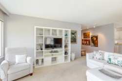 The DOGWOOD. Estate Sale in this sought-after 55+ community in the heart of White Rock. Bright, sunny, top-floor end unit boasts a 28 foot long balcony perfect for sipping coffee and watching the sun rise. This large 1117 sq ft 2 bed/1.5-bathroom suite offers ample natural light and plenty of space to relax. It accommodates house size furniture making it great for downsizing. With in suite laundry, one parking stall and one storage locker included, you'll have everything you need. Bring your decorating ideas and enjoy the best of White Rock living with its beautiful beaches, shops, and restaurants just a short walk away. Plus, with easy access to downtown Vancouver, you can enjoy the best of both worlds. Strata fees cover heat and hot water. Pets allowed. Motivated Seller!