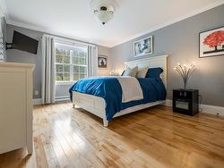 Discover an extraordinary bungalow situated on a private, treed acreage with abundant space to roam, flanked by an active brook on two sides. This standout property features a fully finished walk-out basement built with an insulated concrete foundation (ICF), providing durability and comfort. Designed with a smart layout, the home includes two spacious bedrooms on the main floor and an additional bedroom and a large den/office in the basement, accompanied by a full bathroom on each level. You'll appreciate the convenience of a mudroom that leads directly into the attached garage, along with a shed for ample storage. The kitchen is a remarkable highlight, boasting a massive island and top-of-the-line appliances, including a coveted pizza oven. Every detail has been meticulously crafted, with stunning custom decorative trim and elegant medallions throughout, perfectly paired with exquisite hardwood and ceramic flooring. Efficiency is a priority, with ETS heaters offering time-of-day power discounts and a newer heat pump ensuring optimal climate control year-round. Unwind on the inviting covered front verandah or explore the expansive 3.67 acres, where the soothing sounds of the babbling brook enhance your outdoor experience. Enjoy the ultimate in country-style privacy from your elevated deck, all without the hassle of a long commute to town.