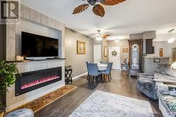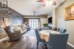 Top 5 Reasons You Will Love This Condo: 1) Experience effortless everyday living in this beautifully spacious 1,110 square foot condo, featuring two generously sized bedrooms and two full bathrooms, and the ability to accommodate a quick closing, tailored for those who value space, simplicity, and seamless flow 2) Beautifully finished with granite countertops in the kitchen and bathrooms, high-end Maytag appliances, aWhirlpool water softener, an Energy Star-certified Ecobee smart thermostat, designer palm leaf ceiling fans, California shutters, stunning wood accent walls, a gorgeous tiled entertainment wall with TV wall mount and a cozy Napoleon 60" electric fireplace with a remote in the living room 3) The open-concept layout includes a modern kitchen and spacious bedrooms, including a primary suite with its own ensuite bathroom 4) Enjoy outdoor living on the large private balcony in a pet-friendly building with a gas furnace, central air conditioning, indoor parking, and a personal storage locker 5) Conveniently located close to trails, Bear Creek Eco Park, schools, shopping, restaurants, community centres and seniors centres, Highway 400 access, Barrie's downtown core and beaches, and features an outdoor gym area, playground, patio pergola with seating and plenty of visitor parking for guests. 1,110 above grade sq.ft. (id:27)
