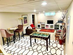 A rare true 5 bedroom home, 4 car attached garage, 6 car driveway, fully owned 10K solar system, in ground swimming pool set on a peaceful, coveted street in the welcoming Allandale Heights neighbourhood. Bathed in natural light, it is truly a rare offering. Less than 2 km to groceries, highway access, beach, and free boat launch; walking distance to lake, 3 great schools, rec center, sports courts, playground, trails, convenience shopping, outdoor ice rink and tobogganing, this home and location offer no shortage of enjoyment. The expansive, low maintenance property with useable space far exceeding the legal description, features beautiful mature trees, perennial plantings all around, a balcony from which you can view the fireworks over Kempenfelt Bay. A 2-tiered backyard oasis measuring 80 ft across the back with in ground swimming pool, dining patio, privacy fence, custom railings, pool shed with contents and D.O.T. furniture. Inside you will find a warm, bright and comfortable environment. Plenty of space to be together or separate with 2500+ square feet. This traditional layout offers a WETT - certified wood - burning fireplace...think holidays and s'mores... Additional large family room/ rec space in full height, dry basement plus open concept, dining/kitchen/family room and a formal living room complete the entertainment spaces. Upstairs you will find 5 bedrooms. The large, private primary suite with 2 closets and spacious marble walk-in shower is separated from the other bedrooms/bath for ultimate relaxation. ESA certified electrical upgrades, quartz kitchen counters, energy star appliances are only some of the many bonuses to be found at this meticulously maintained property. 4 car garage plus new 6 car driveway allow plenty of free legal storage for boats, RVs, toys and cars. Note: the lighting in some photos does not highlight the warmth and brightness of this lovely, move-in ready, family home.