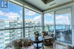 SUNLIT CORNER UNIT PENTHOUSE WITH PANORAMIC KEMPENFELT BAY VIEWS & ACCESS TO IT ALL! Welcome to elevated waterfront living in the heart of Barrie's vibrant Lakeshore neighbourhood. This spacious top-floor corner unit in the sought-after Grand Harbour building boasts breathtaking panoramic views of Kempenfelt Bay, the city skyline, and the Barrie Marina just across the street. Step outside and enjoy being just moments from Centennial Beach, scenic boardwalks, parks, and the bustling downtown core filled with restaurants, patios, shops, and entertainment. Inside, the bright open-concept kitchen, dining, and living area impresses with soaring 9-foot ceilings, hardwood floors, and a cozy natural gas fireplace, with a sliding glass walkout to a private balcony perfect for morning coffee or evening sunsets overlooking the water. The layout features two generously sized bedrooms, including a serene primary suite with a walk-in closet and a spa-like 4-piece ensuite complete with a soaker tub and glass-enclosed shower. A second full bathroom, in-suite laundry, and included parking and storage offer everyday ease, while premium building amenities - an indoor pool, fitness facilities, a games room, and guest suites - elevate the lifestyle and complete this exceptional offering. Commuters will love the quick access to Highway 400, the Allandale GO Station, and public transit. Don't miss this rare opportunity to live just steps from the shoreline in one of Barrie's most sought-after waterfront destinations - where every day feels like a getaway! (id:27)