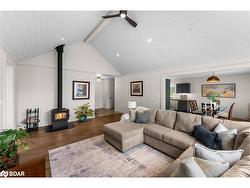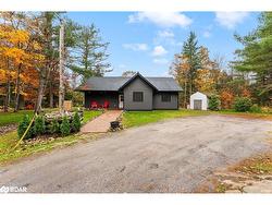 Discover peaceful country living on nearly 10 private acres with this bright, thoughtfully designed 3-bedroom bungalow. With over 1,600 sq. ft. of living space and in-floor heating throughout, this home offers comfort and style year-round, whether as a full-time residence or weekend retreat.The spacious living room boasts a soaring cathedral ceiling and a cozy woodstove, creating a warm, inviting space to relax. The open-concept kitchen flows seamlessly to a massive deck, perfect for BBQs, morning coffee, or simply enjoying the serene surroundings.Retreat to the primary suite featuring a private walkout, walk-in closet, and a stylish 3-piece ensuite with a custom-tiled shower. Step outside to a covered front porch, a cleared yard with firepit, and a large storage shed — ideal for outdoor gear, tools, or hobbies.With ample parking, total privacy, and a prime location just minutes to Hwy 11, Bracebridge, and Gravenhurst, this property blends tranquility with convenience. Experience the Muskoka lifestyle you’ve been dreaming of — where every day feels like a getaway.