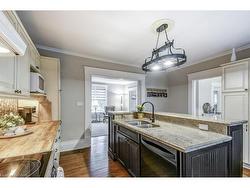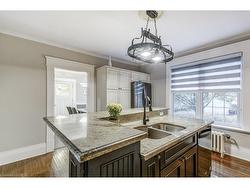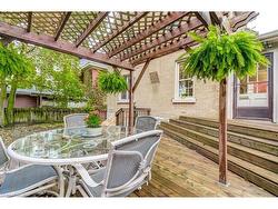 Bright 3 + 1 BR family home full of charm & character. Fresh, neutral decor, H/W floors, crown molding. Kit w/ butcher block counters & granite top island. Separate DR w/ wainscotting. LR w/ gas FP & original pocket doors. 4 pc spa-like bath. W/O from 3 season sunroom to 20 x 16 deck with pergola. Fin L/L w/ workshop and walk-up. Private yard backs onto old lane. Storage shed. Quiet tree-lined street in desirable Henderson/Holmedale area. Note Co-Listed with Lizanna Koster Real Estate Brokerage.