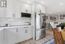 Welcome home to 41 Dante Crescent in Brantford. This move-in ready, recently updated home checks all the boxes! Situated in a great neighbourhood with no rear neighbours, this property offers 3 bedrooms, 2 bathrooms, and a bright, open-concept floor plan - perfect for family living and entertaining.The spacious foyer conveniently splits the two levels of the home and provides direct access to the backyard and attached garage. Upstairs, you'll find a beautifully designed open-concept main level featuring a large living room with a built-in electric fireplace, oversized windows that fill the space with natural light, and plenty of room to gather with family and friends. The modern eat-in kitchen boasts matte grey shaker-style cabinetry with black hardware, stainless steel appliances, and ample counter and cupboard space - the perfect setup for hosting holiday dinners or everyday meals.Down the hall, you'll find two generous bedrooms, including the primary suite, along with a four-piece bathroom.The lower level is ideal for extended family or guests, featuring large above-grade windows, a spacious family room, an additional four-piece bathroom, and a third bedroom. A finished laundry room adds convenience to this level.Step out from the foyer onto the spacious wooden deck, complete with a gazebo - the perfect spot to relax and unwind. The private backyard offers plenty of space for children or pets to play, surrounded by beautiful tree-lined views for added privacy. The 1.5-car garage provides ample storage and parking, with a separate door for easy access to the yard - and is fully heated with a brand new furnace, offering comfort and convenience year-round.Location, layout, and move-in ready charm - 41 Dante Crescent is the perfect place to call home. (id:27)
