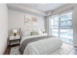 Urban living in the highly sought after Paradigm Community, a premier master-planned community in the heart of Burlington. This well maintained 2 bedroom, 1 bathroom suite offers a smart, open-concept layout. The modern kitchen features elegant quartz countertops, classic shaker cabinetry, and abundant storage, perfect for cooking or entertaining guests. The sun-filled living area extends to a wrap around private balcony showcasing breathtaking south-facing views of Lake Ontario. The spacious primary bedroom offers floor to ceiling windows allowing for plenty of natural light. A second well-proportioned bedroom and a 4-piece bathroom conveniently situated between the two rooms enhance everyday comfort. Additional features include in-suite laundry and stylish designer finishes throughout. Residents of Paradigm enjoy an exceptional array of amenities, including an indoor pool and spa, fitness centre, basketball court, games and party rooms, sky lounge, and beautifully landscaped outdoor spaces. Ideally located steps from the Burlington GO Station, transit, and downtown Burlington, with easy access to the lakefront, highways, top-rated schools, shops, restaurants, and community facilities. Includes one parking space and one storage locker.