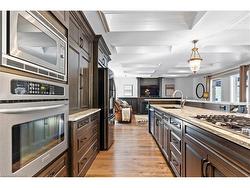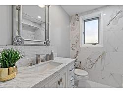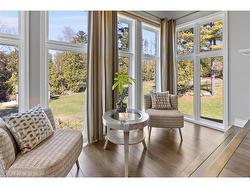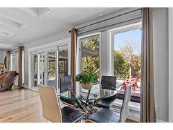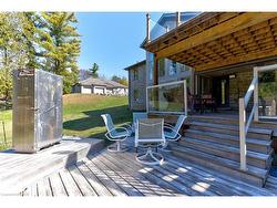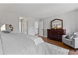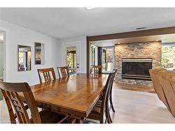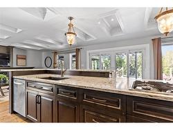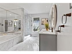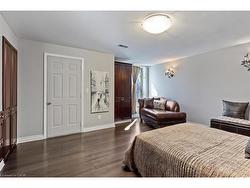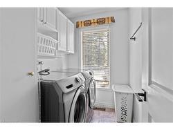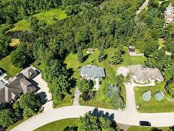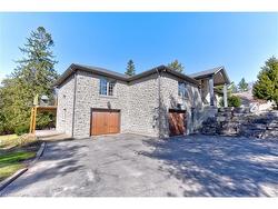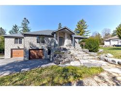 RARE OPPORTUNITY! Custom built raised bungalow on a 1.04-acre lot, offering court location surrounded by protected greenspace. This exclusive, 10 estate court rarely has homes come up for sale and 20 Grandy lane is one that takes full advantage of the natural features, completely backing onto mature forest with direct access to Millcreek conservation land. The home features a stunning all stone exterior with a beautiful retaining wall and carefully set natural stone steps, leading to the front door. The main level layout is wide open with large windows, designed to overlook the backyard from anywhere within the open space and providing access to the elevated multi-level deck completed with composite decking and glass rails. A rich, maple raised panel kitchen sits central with an oversized quartz countertop and raised bar sitting area; elegant crown molding finishes the cabinets to the ceiling with built-in stainless-steel appliances, gas cooktop. Equal in elegance is the built-in family room wall unit featuring gas fireplace insert. A three-sided fireplace separates the dining room from a sunken sitting area providing for an elevated view of the backyard; coffered ceiling accents and hardwood flooring span the space. Completing the space is a large bedroom, laundry, 2-piece bathroom, and the primary suite, complete with walk in closet and recently renovated(2023) 5-piece spa like ensuite. A hardwood staircase leads to the lower level which is still completely above grade; the home was strategically placed to take full advantage of the walkout. Lower level gives access to the oversized, staggered double car garage. Perfectly suited as a multi-generational home, offering three bedrooms, a recently renovated (2023) 4-piece bathroom, recreation room with gas fireplace, and kitchenette along with wet bar. Roof(2024), Additional oversized garden shed for equipment storage. Minutes from the 401, amenities, and schools. Don’t miss this truly beautiful property!