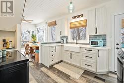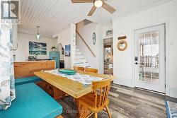 Treetop oasis in the quaint beach community of Port Stanley offers a unique destination appealing to those seeking a short-term getaway or family destination, merely steps from the beach & beautiful shores of Lake Erie. This high demand, income generating property with proven success & approximately 50K of annual revenue provides the best of BOTH worlds for those eager to acquire a vacation home while maintaining the opportunity to generate rental income when not occupied for yourself. WIN-WIN! With breathtaking, panoramic views of Main Beach to the South and Little Beach to the East, this property will captivate each visitor. A peaceful retreat, perched elevated amongst the trees, this is your chance to own your own piece of paradise! Bright oversized windows overlook a newly built deck where you'll experience the soundtrack of waves & spectacular water vistas. Plenty of seating in the dining area ensures a crowd can be hosted with ease. A functional kitchen includes fully updated finishes with chic new cabinetry, stylish new appliances, laundry & access to side yard. Generous living room includes three large patio sliders with gorgeous views of the lake & cozy wood burning fireplace. Primary bedroom includes multiple bright windows & private ensuite with free standing tub. Head upstairs to discover two additional bedrooms as well as updated 3PC shower. Significant renovations completed including updated Northstar windows, luxury vinyl plank flooring, drywall, paint, metal roof, deck & AC. Lower level is ready for your finishing touches, currently roughed in with electrical plumbing to complete a self-contained studio apartment or added living space. Deeded parking includes space for two vehicles as well as storage shed, just steps away on Sydenham St. A short walk brings you to the beach as well as many of Port Stanley's amazing restaurants & amenities. Truly a destination to appreciate with great appeal to enjoy as an income generating retreat! (id:27)