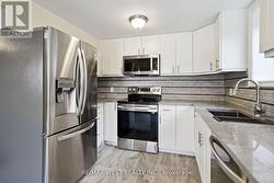 Stunning dual-family detached home on a sun-filled corner lot at 196 Millburn, ideally located close to parks, schools, shopping, and transit. Perfect for multi-generational living or investors, this home features over $150,000 in renovations completed in 2021 for the legal walkout basement apartment, creating a bright, fully self-contained unit with its own kitchen, bedroom, bath, and laundry ideal for extended family or rental income. The main level showcases a modern kitchen with quartz counters, stainless steel appliances, hardwood floors, gas fireplace, and convenient laundry with access to the double garage. Upstairs, the spacious primary retreat offers a walk-in closet and spa-like ensuite, with additional bedrooms featuring hardwood throughout. Finished with California shutters and pot lights, this home blends elegance, comfort, and flexibility in one exceptional package. (id:27)