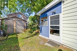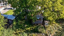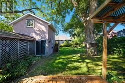Quintessential small town living in the heart of downtown Cobourg with private backyard oasis and bonus office/studio space above the detached garage. Built in 1856, this home offers a tasteful blend of modern finishes and century charm. Main floor offers convenient single-level living with large welcoming foyer with open wood staircase, spacious front living room with large windows and adjoining bright and open dining room. Modern updated kitchen with granite countertops, stainless appliances, breakfast bar and new backsplash and range hood. Generous bedroom with walkout to large covered deck. Main floor completed with 3-piece bath with clawfoot tub, laundry room, and 3-season sunroom overlooking the private backyard retreat. Upstairs boasts a large open primary bedroom with 3-piece ensuite as well as a third bedroom/office/dressing room with large walk-in closet with built-in shelves. The large detached garage and workshop is a hobbyist's dream with a separate panel and bonus ~200sf upstairs studio/office/guest room with new heat pump and upgraded insulation. Sprawling backyard (almost entirely fenced) with soaring mature trees, perennial gardens and lots of privacy. The large covered porch with Eastern exposure offers an idyllic space to start your day with a morning coffee or unwind after a day's work. Located just steps from shops, restaurants, library, Cobourg Beach & Marina, Lake Ontario, dog park and schools. This home has something for everyone and is sure to please. Recent updates include: new heat pump & upgraded insulation for office/studio, new electrical panel in garage, range hood, backsplash, PVC waste water pipe, main floor & back deck paint (id:27)