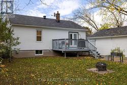 Cute, cozy, and completely move-in ready - this 2-bedroom plus den, 1-bath bungalow with detached garage and a fenced yard is full of charm, comfort and convenience. Fully renovated just three years ago, it blends modern updates with classic warmth. Inside, you'll find a bright and inviting layout with hardwood and porcelain flooring. The kitchen and living areas flow easily together, creating a relaxed space that feels instantly like home. Second bedroom has garden doors that open directly onto a private rear deck, a perfect place for your morning coffee or quiet evenings under the stars. Enjoy peace of mind with thoughtful updates that make everyday living easy - new furnace (2024), select new windows, refreshed basement flooring, landscaping and a brand-new front deck designed for enjoying sunset views. Step outside into your large, fully fenced yard, backing onto a park - ideal for kids, pets, or just a bit of extra privacy. End your day around a portable fire pit (Fire Department-approved), or perfect star-lit nights with friends and family. The detached garage provides secure parking or a great workshop space, while a separate entrance adds flexibility for guests and hobbies. The location couldn't be better - walking distance to schools, shops, trails, and both the Gananoque and St. Lawrence River. Don't wait - charming homes like this don't last long! (id:27)