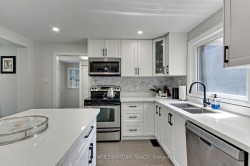 Welcome to 185 Woodland Ave a charming, newly renovated 3-bedroom, 2-bathroom home just 200meters from the stunning shores of Lake Simcoe. Nestled in a prime location, you'll enjoy easy access to nearby stores, Claredon Beach Park, and the exclusive gated community beach. Step inside to discover a beautifully updated interior featuring a modern kitchen with quartz countertops and a spacious eat-in island, brand-new flooring throughout, and fresh paint that brings a crisp, inviting feel. The home is equipped with a smart thermostat for added convenience, a gas hook-up ready for a laundry dryer, and a luxurious deep-soaker Jacuzzi tub for ultimate relaxation. Outside, the expansive 75' x 150' fenced lot offers plenty of space, complemented by a large detached insulated garage perfect for an auto enthusiast workshop setup. This gem blends comfort, style, and practicality all in an unbeatable location!