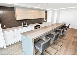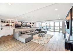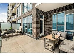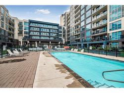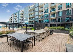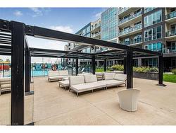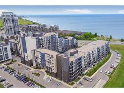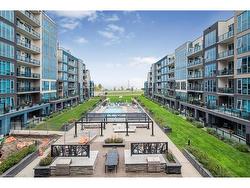 Resort style turn key living! Rare large 290 sqft Patio on quiet side of the building situated near visitor parking. Primary bedroom has direct access to bathroom with jetted tub. Open concept layout, upgraded white kitchen cabinets, stainless steel appliances. Designed to be more like a resort than typical condominium, Aquazul has a courtyard pool, multiple seating and BBQ areas, covered terraces, club room, gym, party room, movie room, billiards etc. Just steps to the lake and beach, near restaurants and all amenities, with QEW access. You'd be proud to show off this home to your family and friends.