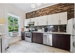 RARE INVESTMENT OPPORTUNITY in heart of Guelph! Fully restored heritage estate offers 5 self-contained rental units on 1-acre lot making it a prime opportunity for investors seeking strong cash flow, potential to expand & option to live in luxury while earning income. W/ability to generate gross rents over $15,000/mth, vacant poss avail for setting market rents, W/strong potential to add 4–5 units at rear of property. 3D survey & prelim architectural plans have been completed & reviewed at City Hall W/positive feedback. Current application submitted for 5 units (in line W/CMHC priorities) though could be adapted to 4 if desired. This groundwork provides buyers W/confidence in immediate returns & future upside. Each unit blends historic character W/modern functionality. Unit 1: 3-bdrm, 2-bath perfect for owner seeking upscale living while living for free. GR W/crown moulding & bay window. Kitchen W/lots of cabinetry & centre island. Formal DR & sep FR for entertaining. Primary bdrm W/skylights & wall of closets. Garden doors open to deck. Renovated 3pc ensuite W/glass shower & floating vanity. 2 add'l bdrms & 4pc bath. Unit connects to fin bsmt W/its own entrance, office W/exposed stone walls, wine cellar, full kitchen & flex living space—ideal for 6th unit or expanded personal use. Unit 2: 2-bdrm & 2-bath, LR W/fireplace & crown moulding. DR with B/I display nook & kitchen W/sleek cabinetry, S/S appliances, access to washer/dryer & side ent. Both bathrooms have W/I glass showers. Units 3 & 4: 2-bdrm 1-bath has charm W/modern updates. Unit 3: floor-to-ceiling windows, brick accent wall & 2-toned kitchen W/in-suite laundry. Unit 4: open-concept layout & fireplace in primary bdrm. Both have 3pc bath with W/I glass showers. Unit 5: 1-bdrm 1-bath W/open-concept living & dining, kitchen with S/S appliances, bdrm & modern 3pc bath. Interlocking brick patios & stone paths lead to outdoor seating area & kitchen. Steps from downtown & walkable to shops, dining, transit &parks