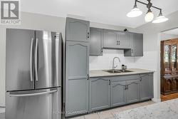 Very well kept fully finished 3 bedroom, 1.5 bath 2 storey townhome with bonus den in quiet complex in desirable west mountain location. Wonderfully peaceful rear yard with no close by rear neighbours. All three levels carpet free. Parquet flooring throughout living room & dining room. Main floor offers functional kitchen with newer countertops 2025, eat-in breakfast bar & ceramic flooring, as well as a formal dining room and spacious living room with sliding door to rear patio & yard plus a convenient powder room. Hardwood staircase leads to second level featuring three generous sized bedrooms, all with laminate flooring, & 4 piece bath with several updates including toilet, vanity & ceramic flooring 2023. Fully finished lower level provides more living space & features roomy & cozy rec room with pot lights & laminate flooring, den (potential 4th bedroom) also with laminate flooring & utility room with laundry area. Two piece rough-in bath offers potential for future extra bathroom. Updated panel box 2015. Some newer windows 2024. Quick and easy access to the Linc. Close to all amenities. (id:27)