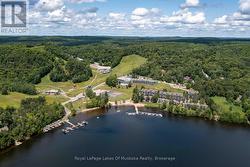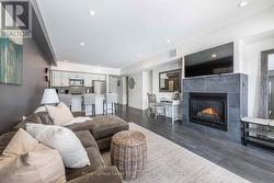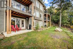 Amazing opportunity to own this beautiful condo close to Deerhurst, built in 2019 and nestled in a private quiet enclave in the heart of all the finest recreational amenities Huntsville has to offer. Just down the street from Hidden Valley Highlands ski hill where you are now a member! Members enjoy a private members lounge at the ski hill and a 300' + sandy beachfront with a beach volley ball court on beautiful Peninsula Lake - part of Huntsville's 4 lake system. You are also now a member of Mark O'Meara a prestigious ClubLink platinum level golf course. Enjoy an incredible new lifestyle in your like new 2 bedroom 2 bathroom condo with upscale finishes. Perfect for pets with high end vinyl flooring and a walk out to your ground level patio facing a wall of trees. So many bonuses- affordable condo fees, in floor heating, gas fireplace, glass shower in ensuite, open concept, designer kitchen, ample storage, and in-suite laundry. Sunlit and thoughtfully designed. Spacious for your relaxation and entertaining apres ski, golf, beach day or just enjoying the sun on your patio while you barbecue. Just across the road from Deerhurst but on a dead end quiet street so you can walk to all the neighbouring restaurants, beach, ski hill, mountain bike trails, hiking trails and more! Also could be a fantastic low maintenance option for an alternative cottage and cover some costs by renting out part time. (id:7525)