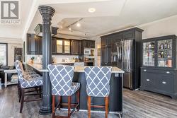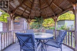This spacious warm and inviting family home has a bonus separate unit with 2 + den lower level walk. Nestled in the heart of downtown Huntsville with a walking score of 10 to all amenities including the mall in this prime sought after area. The 4 bedroom main residence has been a beloved gathering place for family and friends for decades with a bright open concept kitchen/dining and living room surrounded by a window wall and a beautiful custom gas fireplace anchors the room. Kitchen features built in appliances and massive island for the gourmet cook to enjoy creating while still in the middle of the conversation and energy with 6 bar stools for everyone to gather. The main level also offers 3 bedrooms, one with a walkout and a main bathroom and laundry with another walk out to your private rear yard not feeling like you are in the center of town. The 2nd level boasts a large master suite including your 3 piece ensuite and separate office with a private deck. The lower level 2 + den unit has open concept living/dining/kitchen with a gas fireplace, 4pc bathroom and laundry. The current owner have had family renting the lower level for many years and now it is vacant and ready for a buyer to use it or rent it out. The Seller believes the property to be a legal non-conforming duplex when he checked with the Town of Huntsville in 1990's. The Buyer should make inquiries to satisfy themselves as to the legality and future use of the lower level unit. The unit and main residence both have their own separate hydro meters, driveways and parking areas which are interlock brick and in great shape. The main residence enjoys a large wrap around deck plus a patio and a gazebo in the very private backyard. There are no homes behind so it does feel peaceful and removed from the bustle of downtown. This home has been enjoyed by the same family for over 30 years and offers many opportunites for a new family or as an investment. A pleasure to view! (id:27)